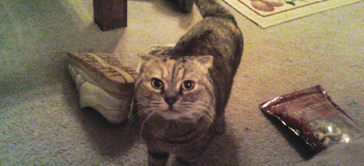 Your popcorn cat is still quite the jumper, but his all time favorite game is fetch. He'll bring a ball over and stare and mew at you if you don't notice, and he'll bring it right back once thrown for a good 30-40 minutes at a time! It's adorable. He's very much a cuddles and a lap cat, and sleeps curled up flush on my right side every single night. Besides fetch, his favorite thing in the entire world is belly rubs. I swear he spends more time on his bag spread eagle than anything else! He's the happiest, sweetest boy in the world!